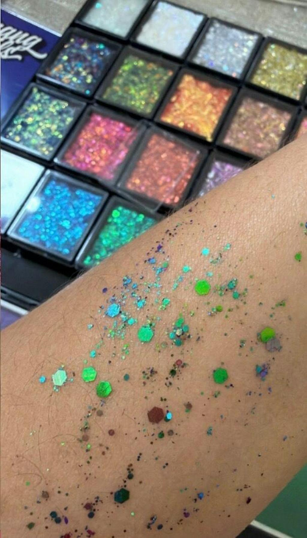 Introducing the Magic Sparkles | Colour Shifting Glitter Cream Palette by Fusion Body Art – a dazzling collection designed to add a touch of magic to your face, body, and hair designs. This palette features an array of vibrant, high-quality glitter creams, with some shades that shift color depending on the light. Perfect for creating stunning, attention-grabbing designs that sparkle and shift with every angle!